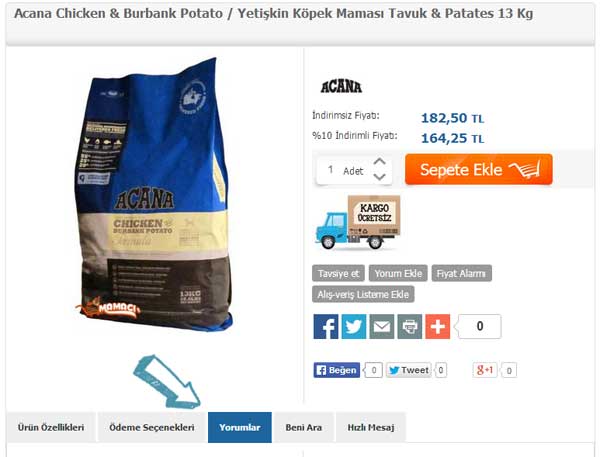 2-) Yorum yapmak istediğiniz ürünün sayfasına geldiğinizde, ürün fotoğrafının alt bölümünde yer alan “Yorumlar” sekmesine tıklayınız.