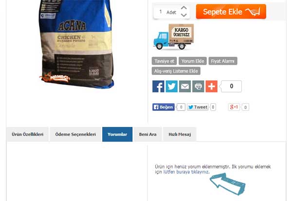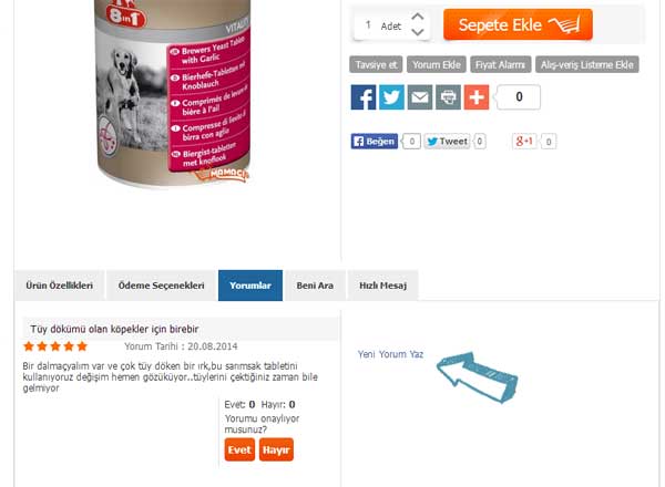 3-) Bu sekmede eğer ürüne daha önce yorum yapılmış ise “Yeni Yorum Yaz”, eğer yorum yapılmamış ise “lütfen buraya tıklayınız” sekmelerine tıklayarak yorum penceresinin açılmasını sağlayabilirsiniz.